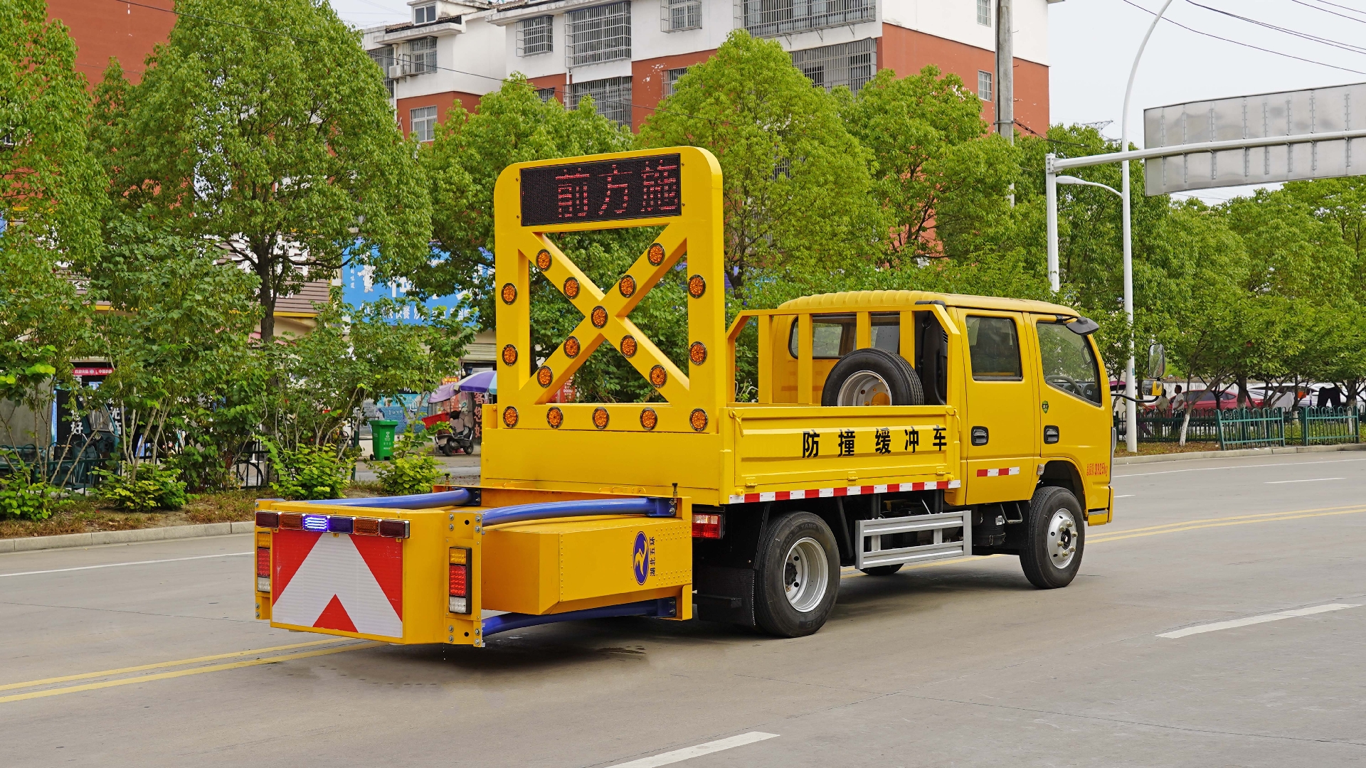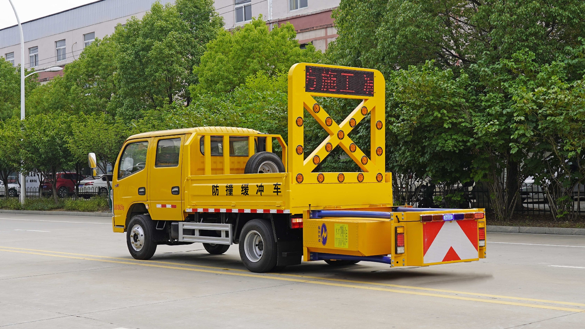 選裝后部結(jié)構(gòu)及防撞包樣式.主要專用裝置:防撞緩沖模塊,安全導(dǎo)向標志.車輛用途:用于道路搶險、救援、施工、臨時封閉等現(xiàn)場對人員及設(shè)備提供安全防護.當側(cè)防護裝置材料材質(zhì)為:鋁合金,連接方式:螺栓與焊接連接.當側(cè)防護裝置材料材質(zhì)為:Q235,連接方式:螺栓連接或焊接連接.后防護裝置材料材質(zhì):Q235,后防護連接方式:焊接連接,后防護截面尺寸(寬×高)(mm):50×100,后防護裝置離地高度:420mm,隨底盤選裝駕駛室.ABS型號/廠家:ABS/ASR-24V-4S/4M/襄陽東風隆誠機械有限責任公司.選裝燈架樣式. |