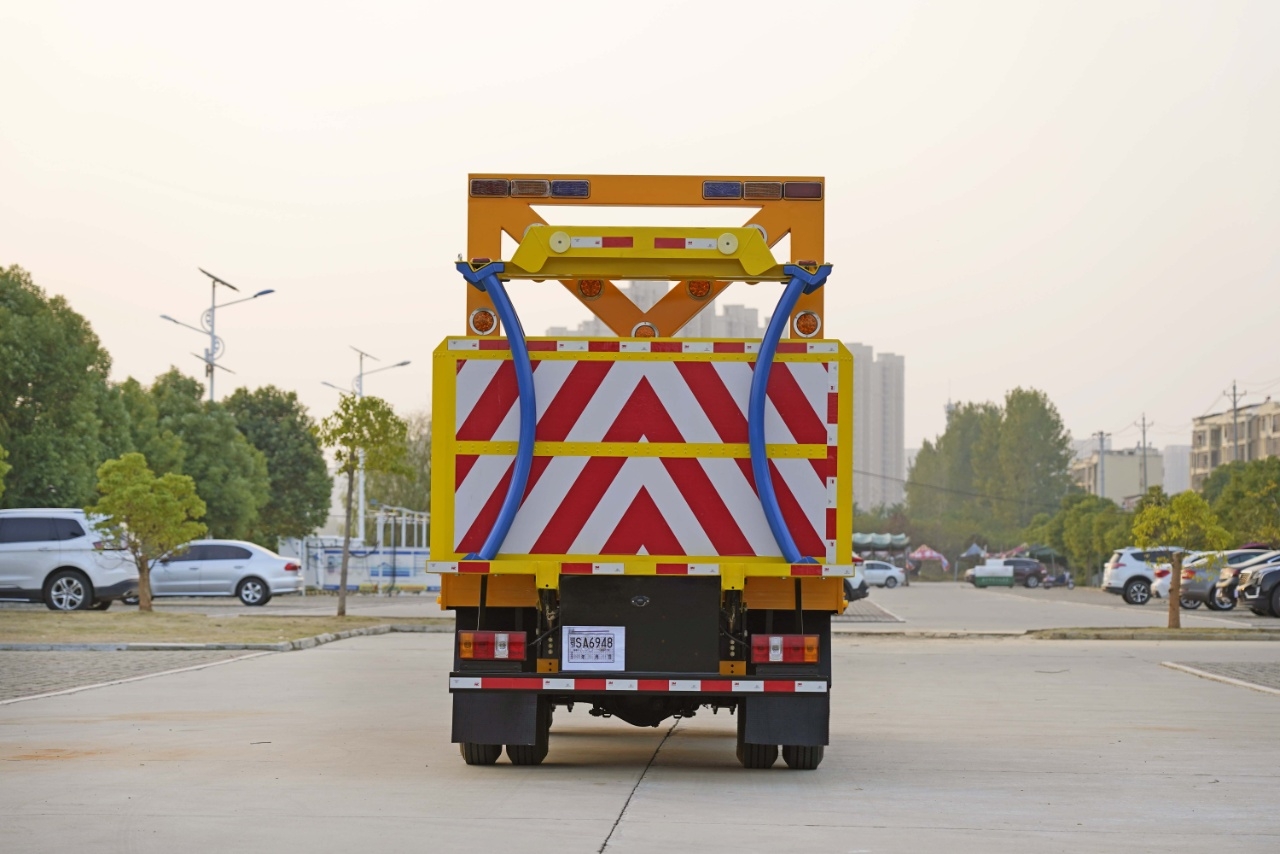 上裝配置:采用Q235國標優(yōu)質(zhì)板材制作,貨箱尺寸:2580mm長*1950mm寬*450mm高,箱體后部防撞緩沖模塊包采用國際知名技術(shù)產(chǎn)品70K防撞緩沖模塊,防撞緩沖吸能模塊主要由車載防撞緩沖墊和導向標志架組成,充當施工作業(yè)車輛后方的緩沖衛(wèi)士。如若發(fā)生追尾事故,能夠在肇事車輛和前方施工作業(yè)區(qū)域之間構(gòu)建一個緩沖區(qū)域,通過機具結(jié)構(gòu)變形吸收撞擊的能量,最大限度地降低被保護人員及設(shè)備遭到碰撞的幾率。