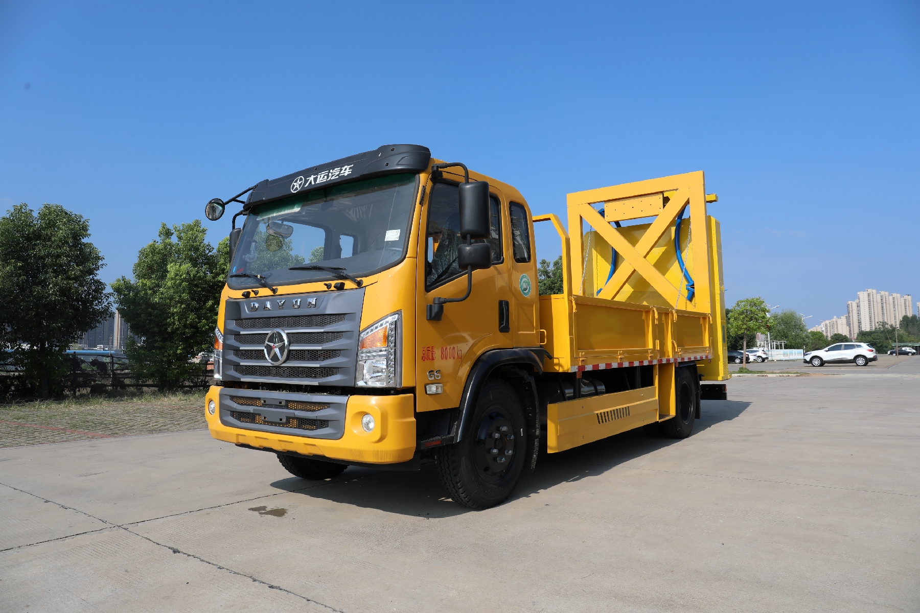 底盤(pán)配置:2080排半G6駕駛室,玉柴165馬力發(fā)動(dòng)機(jī),法士特8檔變速箱,2.7/7噸前后橋,8.25R20 16PR輪胎,232*(7+5+5)三層原廠大梁,160L鋁合金油箱,取力器,遠(yuǎn)程油門(mén),原廠空調(diào),電動(dòng)玻璃,遙控鑰匙。