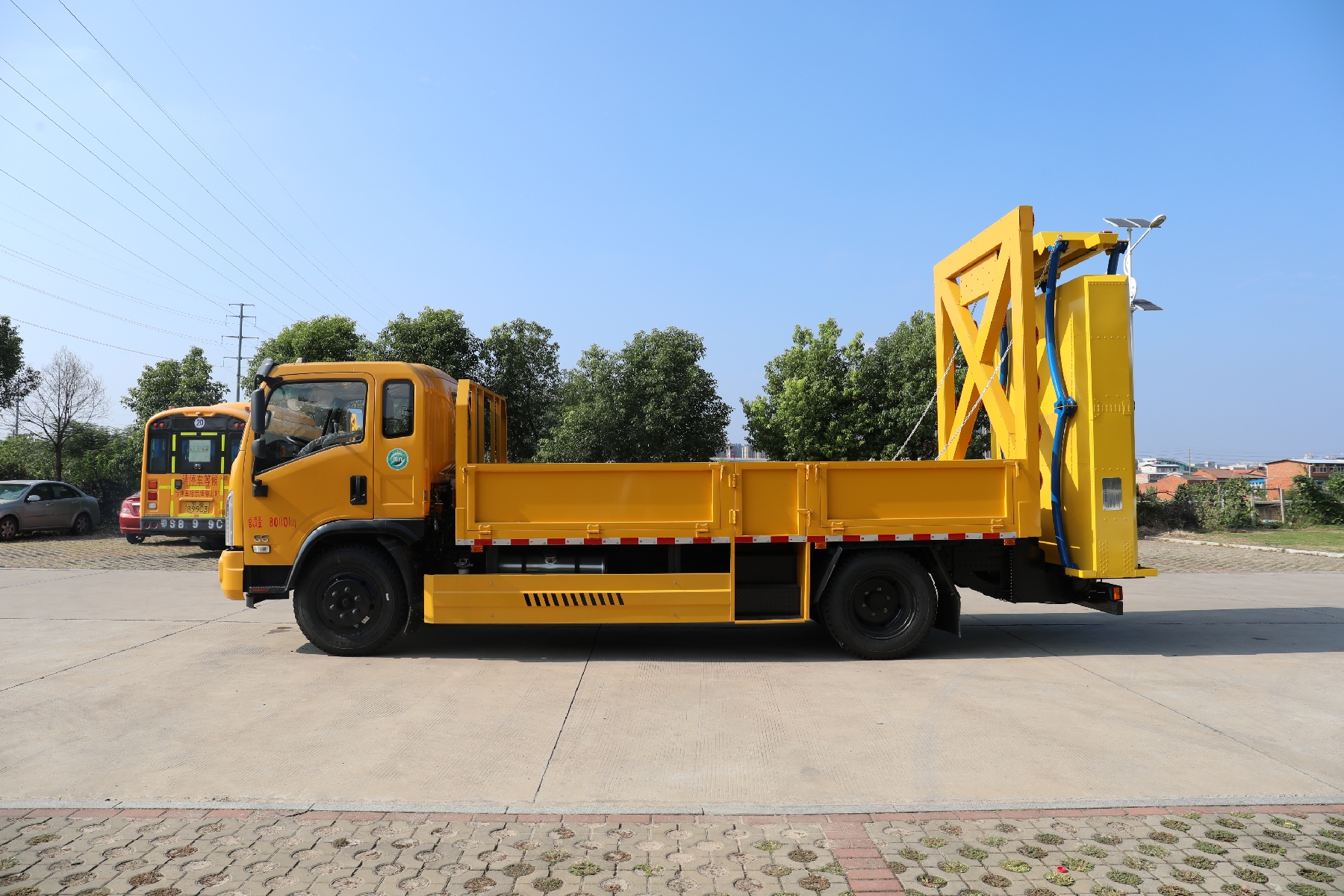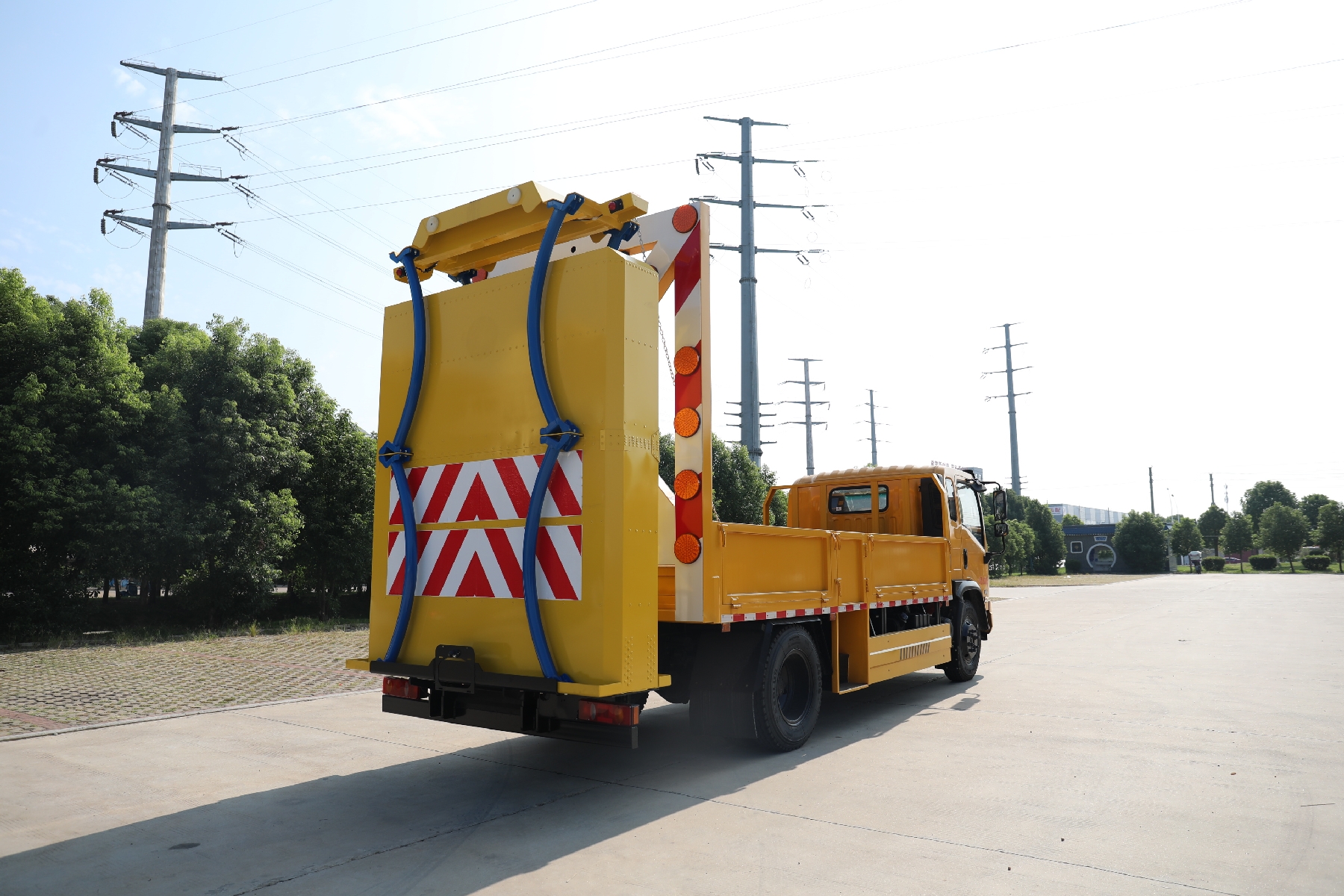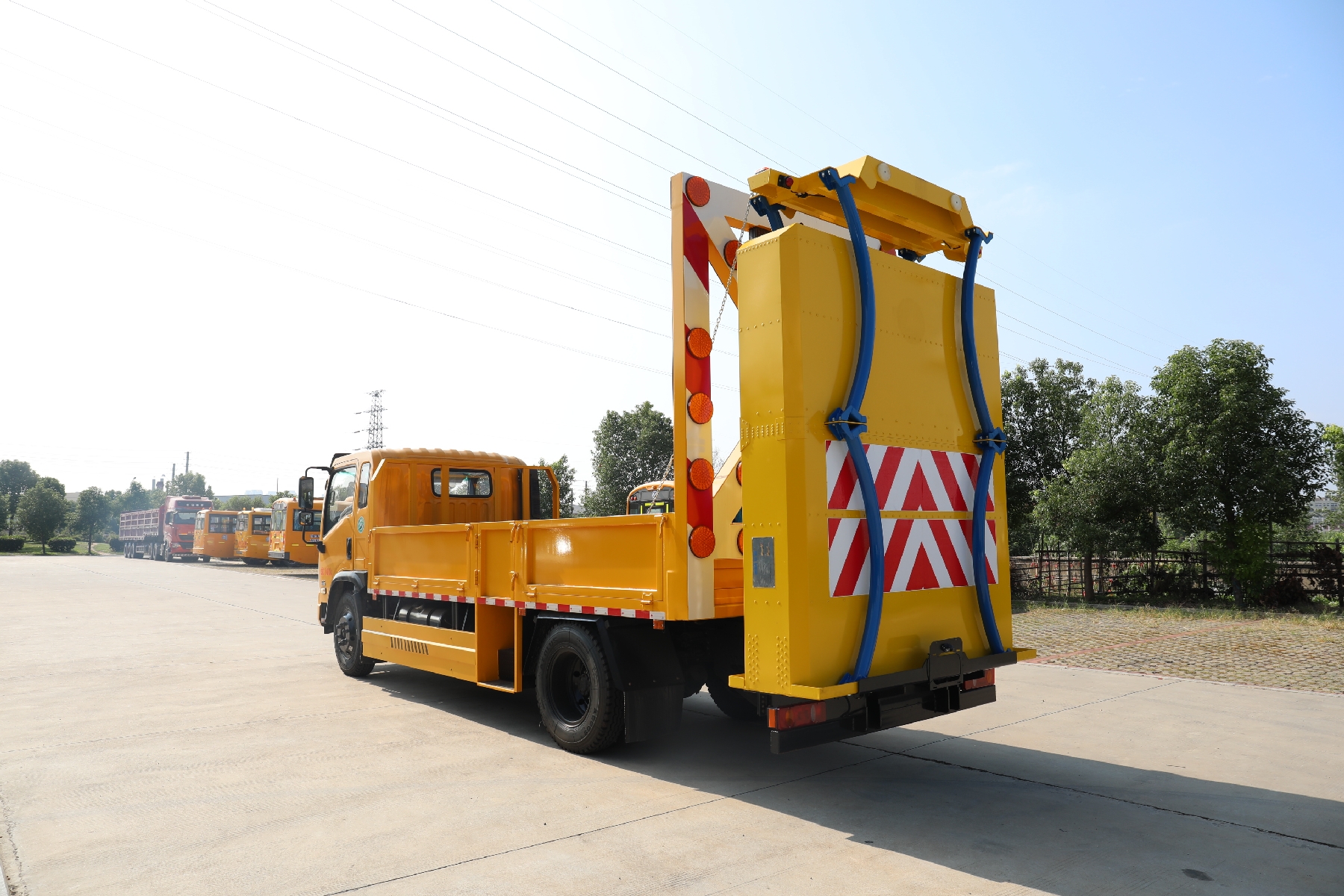 上裝配置:總質(zhì)量:8000kg,貨箱采用Q235國(guó)標(biāo)優(yōu)質(zhì)碳鋼板,貨箱尺寸:4800長(zhǎng)*2300寬*540高,箱體后部防撞緩沖模塊包采用國(guó)際知名技術(shù)產(chǎn)品100K防撞緩沖模塊,防撞緩沖吸能模塊主要由車(chē)載防撞緩沖墊和導(dǎo)向標(biāo)志架組成,充當(dāng)施工作業(yè)車(chē)輛后方的緩沖衛(wèi)士。 如若發(fā)生追尾事故,能夠在肇事車(chē)輛和前方施工作業(yè)區(qū)域之間構(gòu)建一個(gè)緩沖區(qū)域,通過(guò)機(jī)具結(jié)構(gòu)變形吸收撞擊的能量,最大限度地降低被保護(hù)人員及設(shè)備遭到碰撞的幾率。高性能液壓系統(tǒng),可實(shí)現(xiàn)快速舉升和落下操作。