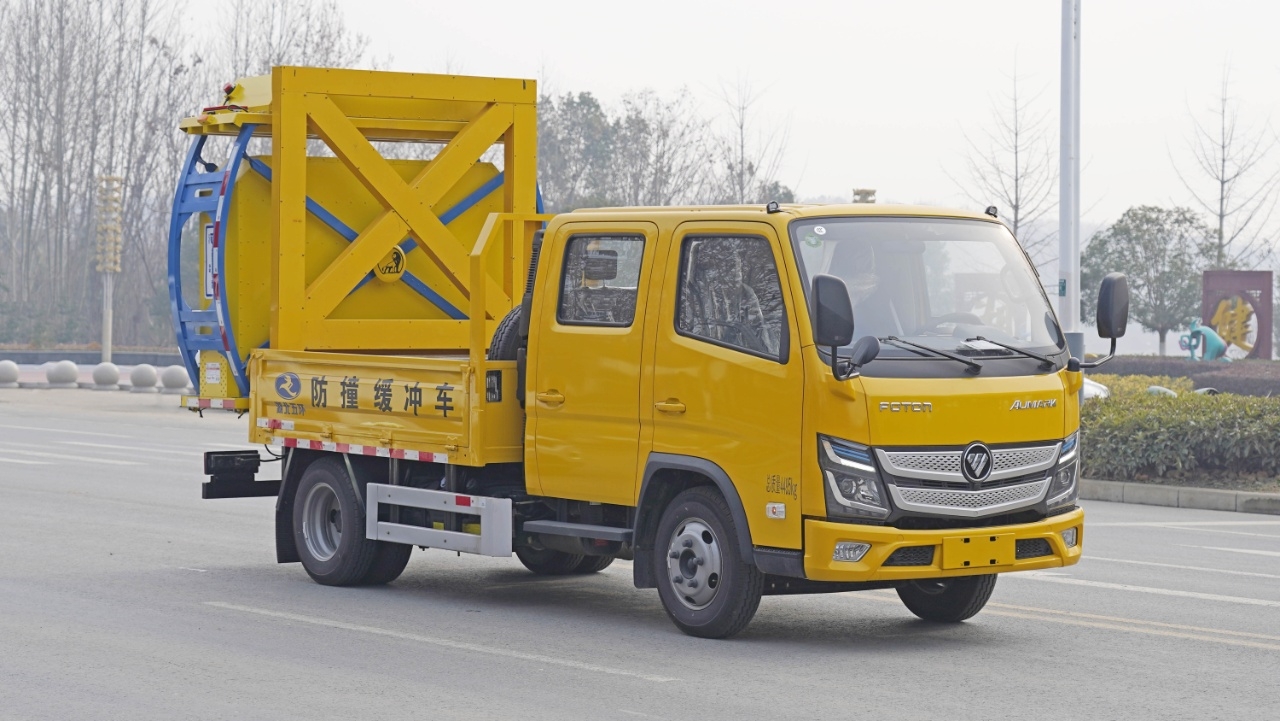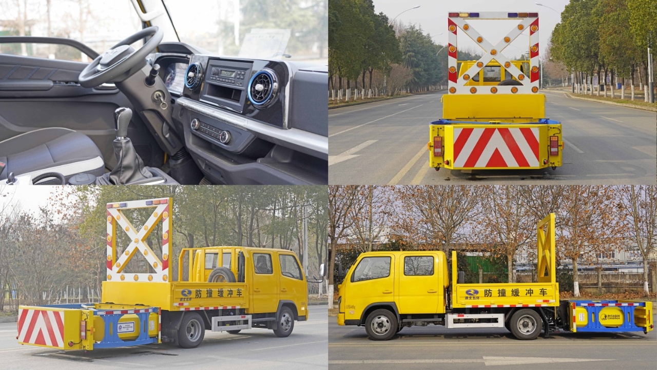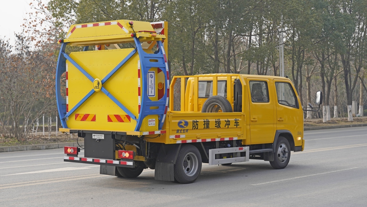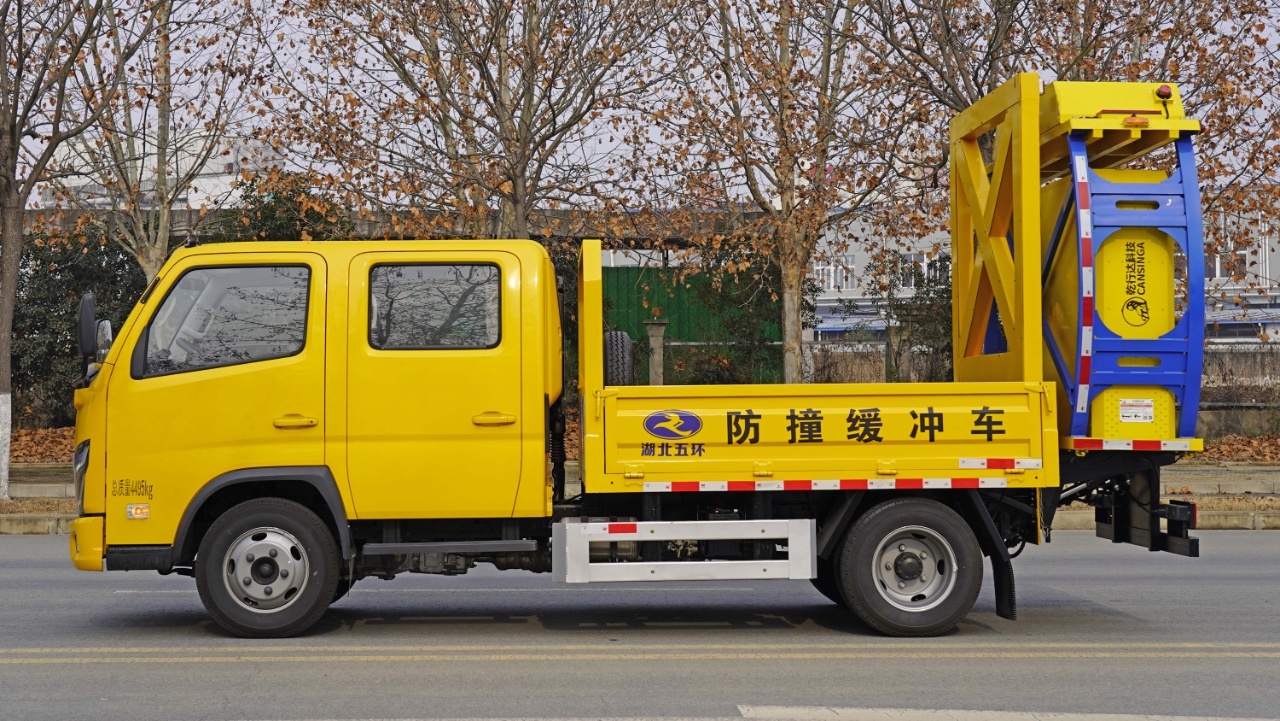 上裝配置:采用Q235國標(biāo)優(yōu)質(zhì)板材制作,貨箱尺寸:2580mm長*1950mm寬*450mm高,箱體后部防撞緩沖模塊包采用國際知名技術(shù)產(chǎn)品70K防撞緩沖模塊,防撞緩沖吸能模塊主要由車載防撞緩沖墊和導(dǎo)向標(biāo)志架組成,充當(dāng)施工作業(yè)車輛后方的緩沖衛(wèi)士。如若發(fā)生追尾事故,能夠在肇事車輛和前方施工作業(yè)區(qū)域之間構(gòu)建一個緩沖區(qū)域,通過機(jī)具結(jié)構(gòu)變形吸收撞擊的能量,最大限度地降低被保護(hù)人員及設(shè)備遭到碰撞的幾率。