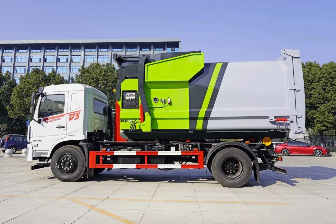 鉤臂垃圾車也叫做車廂可卸式垃圾車,是一種采用高新設計可伸縮的鉤臂,實現(xiàn)垃圾廂的二次吊裝,自吊上放下,可自行傾倒垃圾。該車結構簡單,操作穩(wěn)定方便,裝卸效率高,機械化程度高,節(jié)省人力。一車可帶多個大廂,在裝卸的運輸過程中可有效地避免二次污染。
