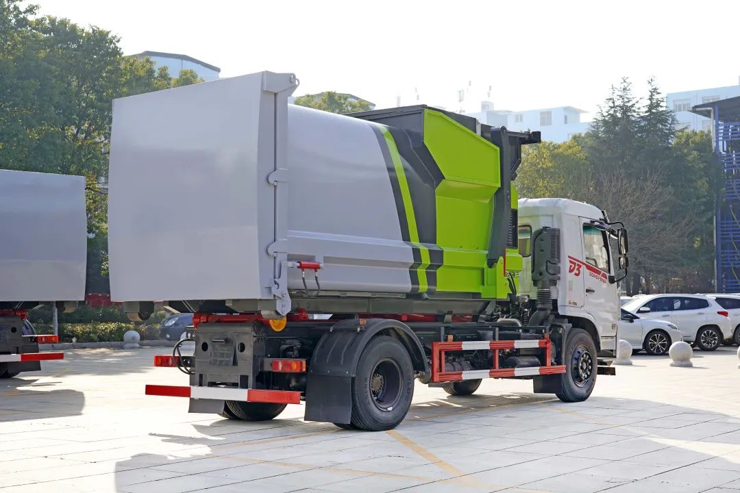 鉤臂垃圾車采用高新設計可擺得鉤臂,一車可帶多個大廂,裝卸方便,實現(xiàn)車廂的二次吊裝并使機構最為省力,具有結構簡單,操作穩(wěn)定方便,高效率裝卸,節(jié)省人力等優(yōu)點。鉤臂垃圾車可根基用戶要求配備若干個垃圾轉運箱。轉運箱可作為一個簡易、美觀、環(huán)保的垃圾轉運站,最大限度提高了車輛的使用效率。
