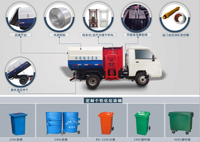 1、密封環(huán)保性:采用獨(dú)特的高位傾翻的全封閉垃圾箱結(jié)構(gòu),杜絕了垃圾和污水沿途灑漏的現(xiàn)象,避免了運(yùn)輸過程中的二次污染。