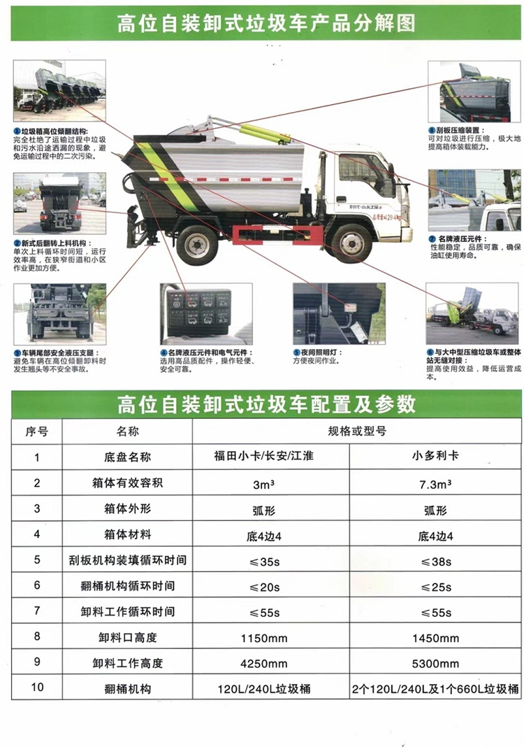 1、密封環(huán)保性:采用獨(dú)特的高位傾翻的全封閉垃圾箱結(jié)構(gòu),杜絕了垃圾和污水沿途灑漏的現(xiàn)象,避免了運(yùn)輸過程中的二次污染。