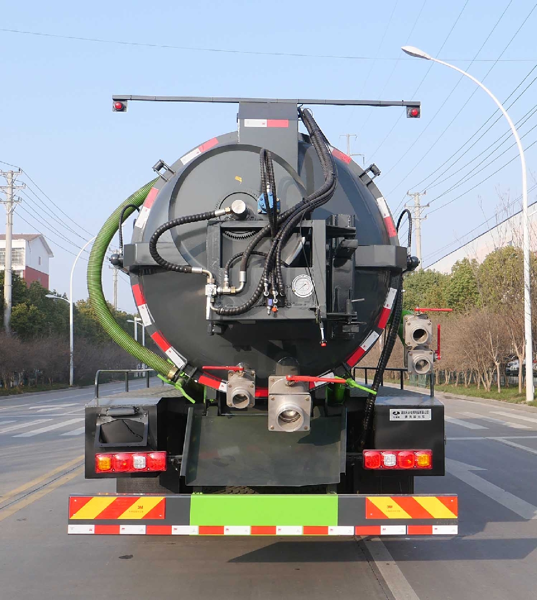 | 整車說明 | 該車用于下水道排污及疏通,專用裝置:罐體及清洗吸污裝置;罐體外形尺寸:罐體總長度5800mm,其中直段長×直徑(mm):5200×1800,其中罐體前段為清水罐(直段長1900mm);后段為污水罐(直段長3300mm);清水罐和吸污罐為兩個(gè)獨(dú)立罐體.污水罐總?cè)萘?8.27立方米,有效容積:7.88立方米,介質(zhì):液態(tài)污物,密度800千克/立方米;清水罐總?cè)萘?5.25立方米,有效容積:5立方米,介質(zhì):水,密度1000千克/立方米;清洗和吸污功能不同時(shí)使用,兩罐不能同時(shí)滿載,清洗功能時(shí)用清水罐,吸污功能時(shí)用吸污罐,罐體帶舉升功能.側(cè)、后防護(hù)裝置材料材質(zhì)均為Q235碳鋼,側(cè)防護(hù)采用螺栓連接,后防護(hù)采用螺栓連接,后部防護(hù)裝置斷面尺寸(寬×高)60×235(mm),后部防護(hù)離地高度:490mm.ABS系統(tǒng)生產(chǎn)廠家及型號(hào):西安正昌電子股份有限公司/型號(hào):ZQFB-V,該車選用4700mm軸距. |