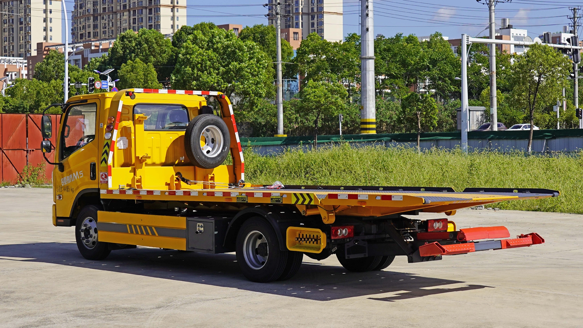 該車用途為道路故障車輛清障;主要專用裝置有平板機(jī)構(gòu)、絞盤.該車不具備拖牽功能,無托舉質(zhì)量.側(cè)、后防護(hù)材料均為Q235,側(cè)、后防護(hù)均為螺栓連接或焊接連接;后防護(hù)斷面尺寸為:50×100(mm),后防護(hù)下邊緣離地高(mm):350;ABS系統(tǒng)控制器型號(hào)為CM4XL-4S/4M,ABS系統(tǒng)控制器生產(chǎn)企業(yè)為廣州瑞立科密汽車電子股份有限公司.該車整備質(zhì)量不包含隨車工具、備胎、滅火器.整車長(zhǎng)/軸距/前懸/后懸對(duì)應(yīng)關(guān)系(mm):5995/3360/1100(1130)/1535(1505),5995/3600/1100(1130)1295(1265).選裝限速裝置,限速80km/h或95km/h.選裝駕駛室樣式,選裝鋁合金輪轂. |