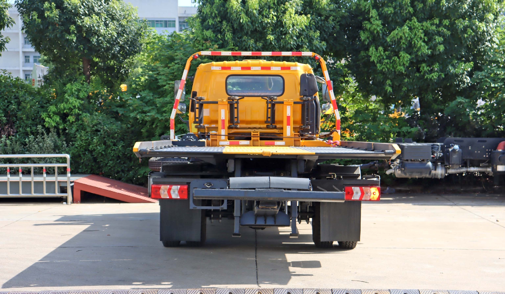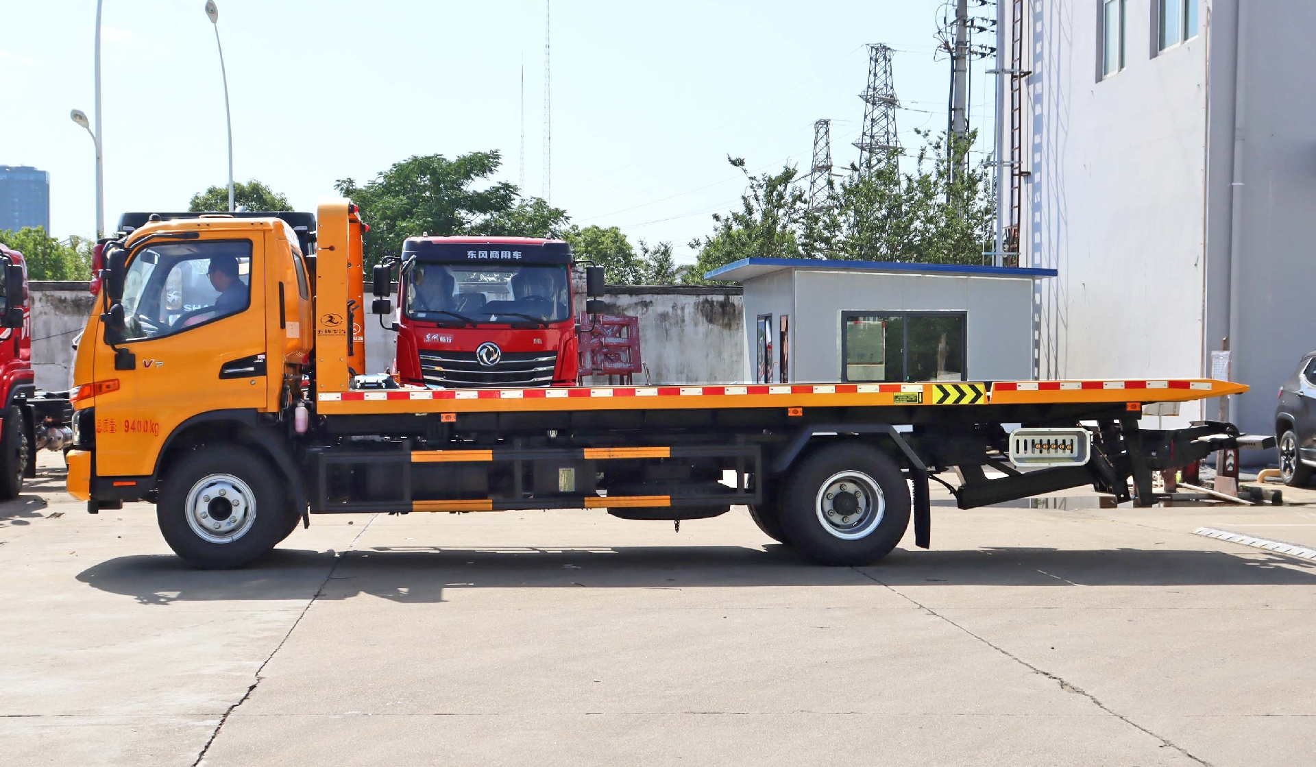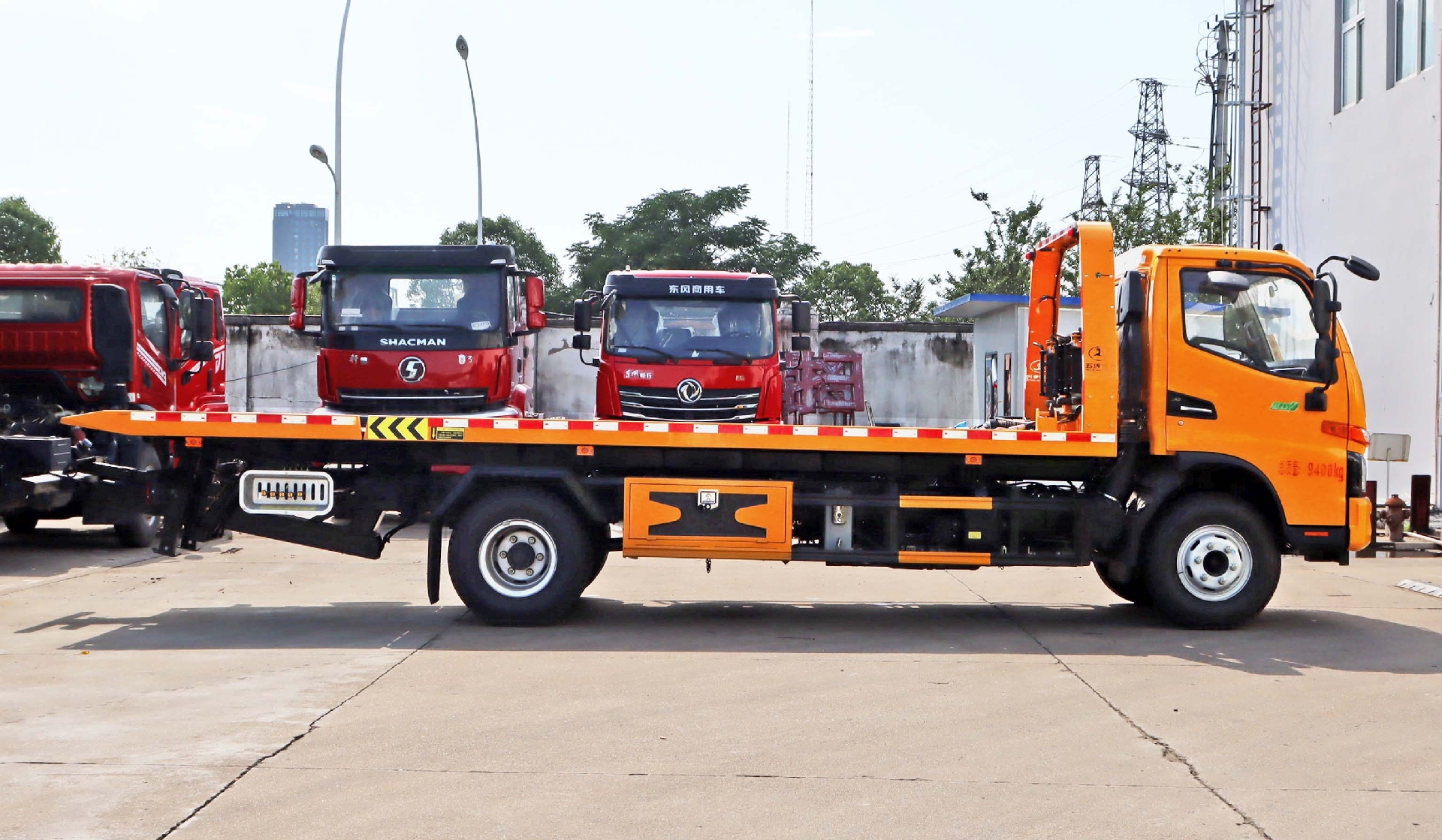 上裝配置:直板,6T上裝,6T后托,配備一個60kn液壓絞盤(25米鋼絲繩),6MM厚花紋板,輔助小車兩個,四根捆綁器,輕量化擋泥板,七字叉一對(車胎抱死時使用),方形套筒一對,三角擋胎器一對,洗手壺一個,一對工作燈,工具箱一個。板長:6.3米,寬:2.55米。