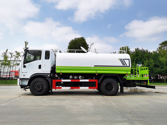 改裝配置:罐體用4MM碳鋼板制作,罐內(nèi)隔板具有防波作用,以減低汽車行駛時(shí)罐體液體的沖擊。整車帶一個(gè)專用灑水泵(垂直最大吸程6米),灑水寬度14米,射程28米。多功能灑水車配備2個(gè)前沖(噴)(能將路面泥巴、塵土、垃圾沖干凈);2個(gè)后灑(能均勻地將水灑在路面,一次灑水寬度14米)、2個(gè)側(cè)噴(花灑)(能均勻地將路旁綠化帶澆灌)、帶1個(gè)后工作平臺(tái),平臺(tái)上安裝1個(gè)綠化灑水高炮(灑水炮可全方位旋轉(zhuǎn),可連續(xù)調(diào)成直沖狀、大雨、小雨、毛毛雨,霧狀可調(diào)節(jié)沖洗高大樹木),引水時(shí)間<5min,流量90m3/h。帶1個(gè)消防接頭,帶1個(gè)自流閥,1個(gè)過濾裝置、人性化爬梯及側(cè)防護(hù)欄,安裝灑水音樂喇叭。