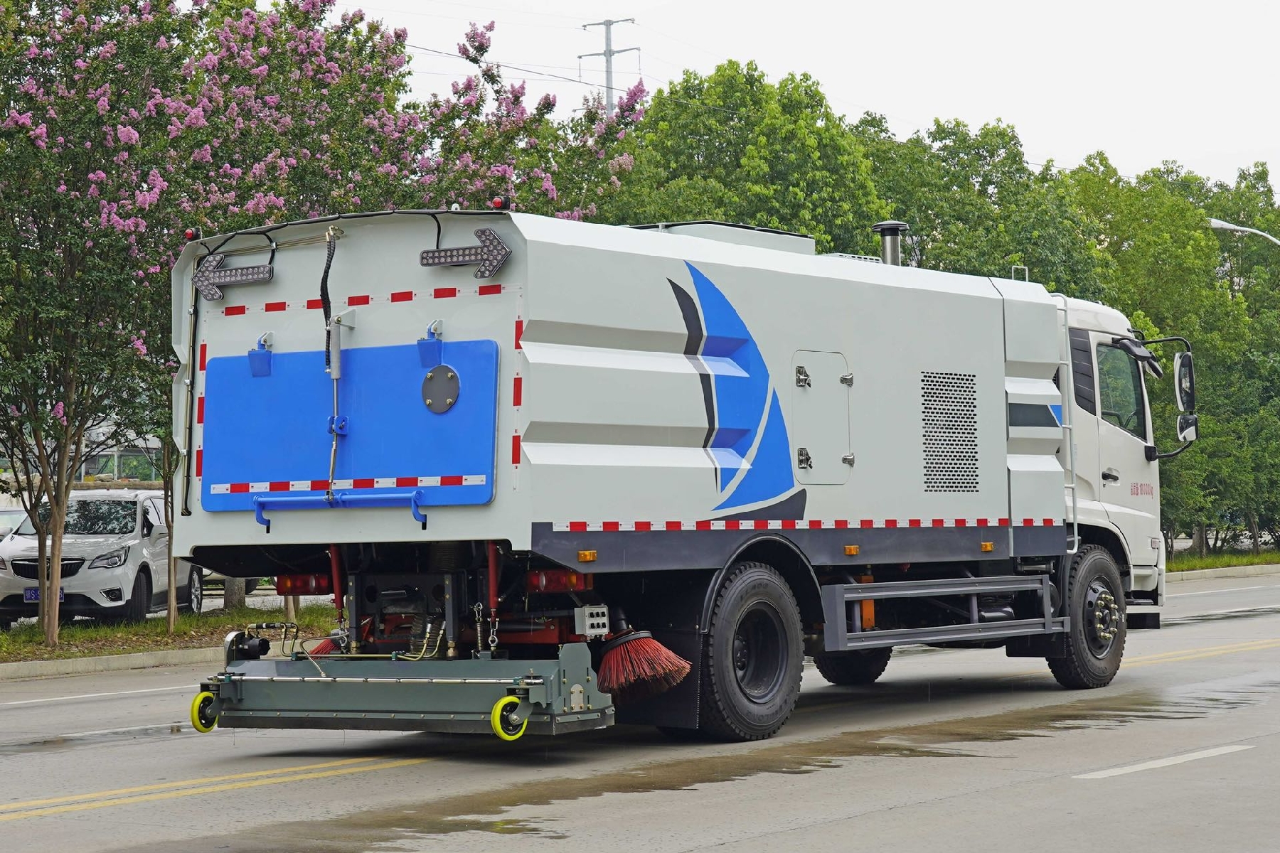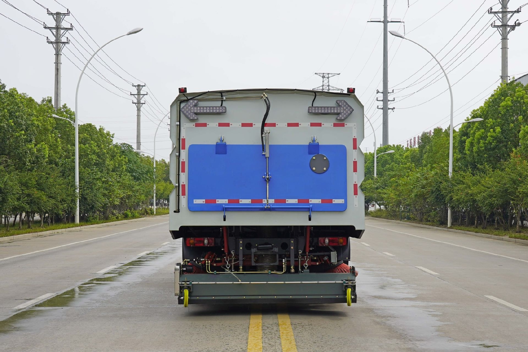 ●上裝配置:水箱容積:3立方,垃圾箱容積:8立方;康明斯170馬力副發(fā)動(dòng)機(jī),大功率免維護(hù)風(fēng)機(jī),海普瑞斯電磁閥組,施耐德控制開關(guān),灑水電子水泵(北方工具水泵),海普瑞斯液壓缸,聚酯濾筒,免維護(hù)分離試離合器,液壓油管,液壓元件采用集成疊加設(shè)計(jì),駕駛室集中控制,操作方便。吸嘴為后置浮動(dòng)式(帶鋼絲滾掃),可自動(dòng)調(diào)節(jié)適應(yīng)地面凹凸不平的狀況,手動(dòng)泵應(yīng)急系統(tǒng),脈沖儀,脈沖閥。獨(dú)立打氣泵,獨(dú)立控制鋼絲掃刷和液壓油散熱器。
