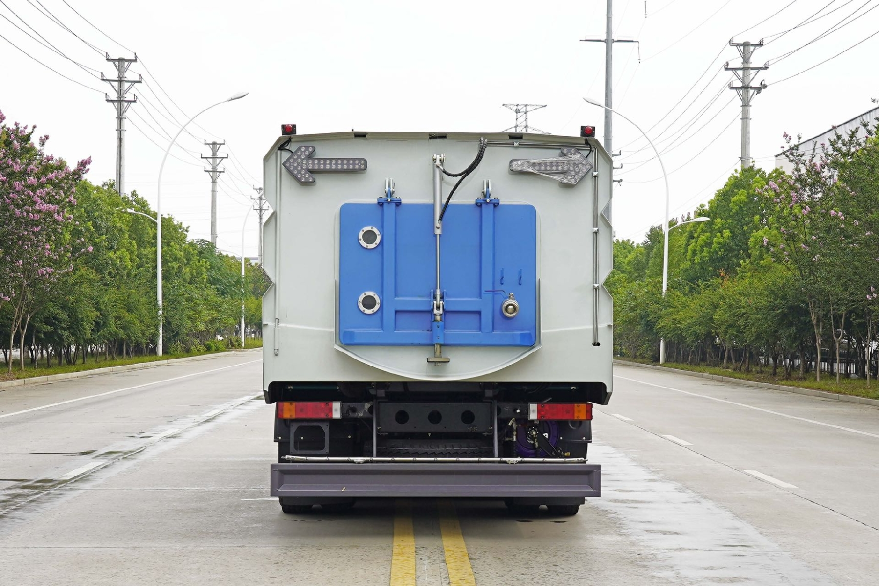 》上裝主要配置:副發(fā)動(dòng)機(jī)、風(fēng)機(jī)、高壓水泵、清水箱(9立方)、垃圾箱(7立方)、左右立掃、帶噴水桿的寬吸嘴、低壓沖洗系統(tǒng)、掃盤降塵系統(tǒng)、液壓系統(tǒng)、專用裝置電控系統(tǒng)和副車架等改裝而成,副發(fā)動(dòng)機(jī)采用康明斯170馬力副發(fā)動(dòng)機(jī),帶2個(gè)中置掃盤,力頓馬達(dá),GTM高壓水泵,高壓路沿清洗噴頭,低壓泵(前沖),不銹鋼垃圾箱,不銹鋼管高壓管路,CAN總線控制,尾部LED箭頭燈,15米高壓洗車卷?yè)P(yáng),垃圾箱、水箱帶防溢低水位報(bào)警裝置,倒車及洗掃狀態(tài)室內(nèi)監(jiān)視器!