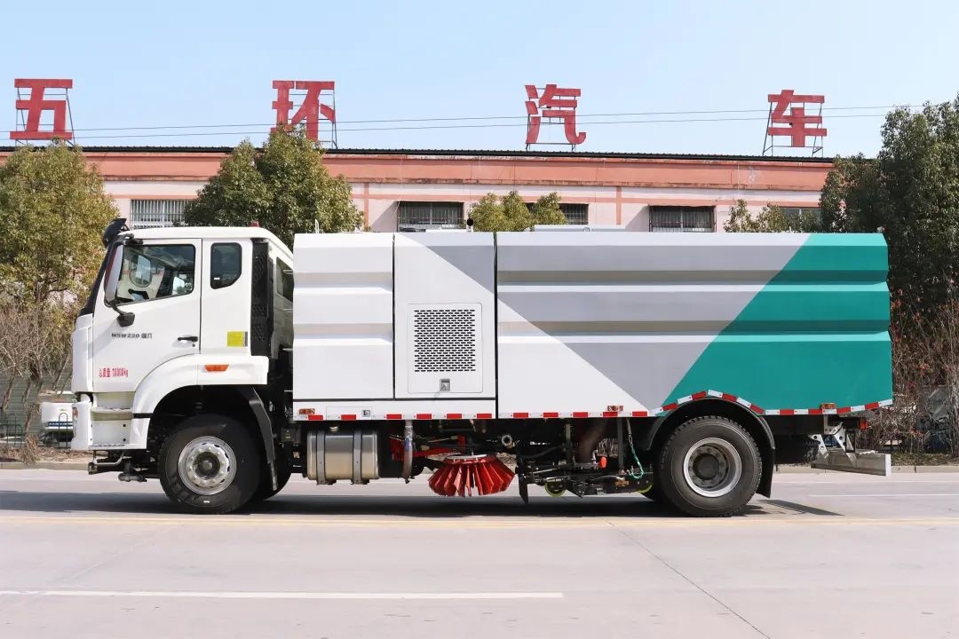 洗掃車是湖北五環(huán)專用汽車有限公司研發(fā)的集掃路車和高壓清洗車功能于一體的高效環(huán)衛(wèi)車,具有路面清掃、路面清洗、路緣和路緣石立面刷洗、后噴霧等多種功能,適用于城市廣場、道路路面和路沿的高清潔度保潔作業(yè),也適用于城市廣場、道路路面和路沿的清掃、清洗等普通保潔作業(yè)。