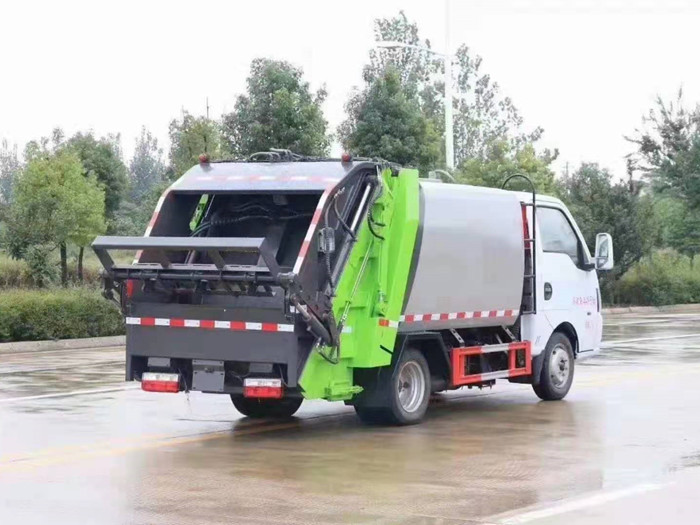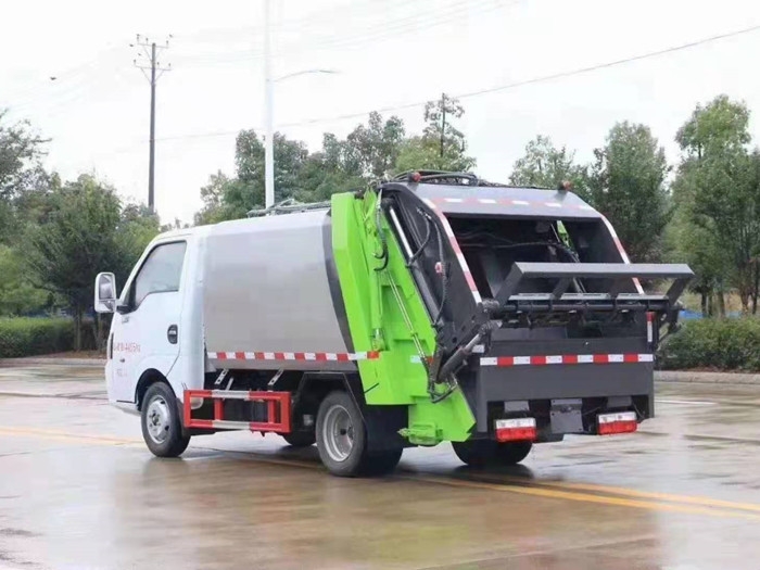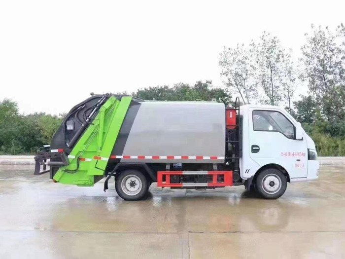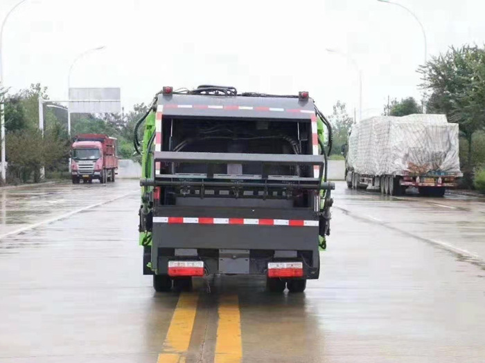 采用Q345高強度錳鋼板制作,廂體容積:3.5立方米,可裝9立方散裝垃圾,壓縮倍率2.5-3倍,壓縮后生活垃圾密度從0.36變?yōu)?.95以上,合肥長源快速液壓泵,大流量快速手自一體多路換向閥,西門子PLC電控系統(tǒng),卸料時帶一鍵循環(huán)系統(tǒng),司機不下車可完成卸料工作,尾部 帶密封橡膠墊,可防污水滴漏二次污染。尾部選裝翻轉(zhuǎn)大落地斗裝置,選裝遙控器操作,讓你遠離灰塵,干干凈凈工作。 國六藍牌凱馬4方壓縮垃圾車可選配后掛桶翻轉(zhuǎn)機構(gòu),三角斗,全密封斗,可掛國標240升垃圾桶或660升垃圾桶。