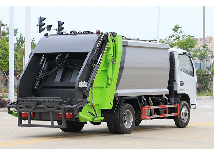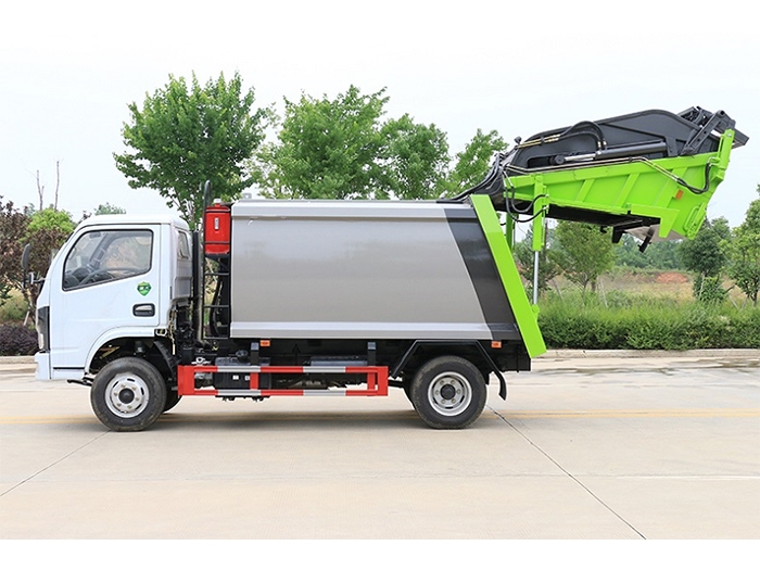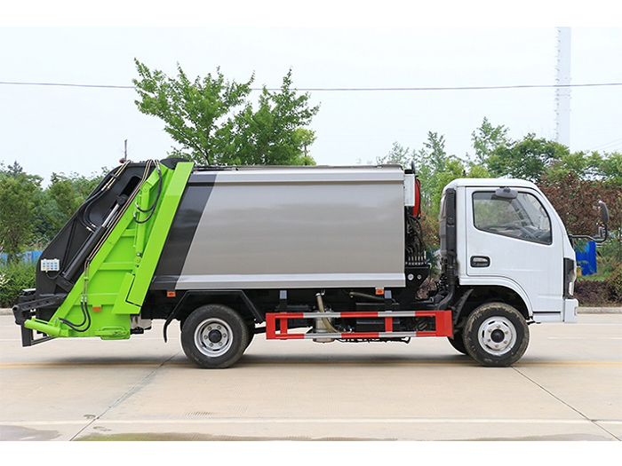 廂體材料為6mm武鋼優(yōu)質(zhì)碳鋼,廂體可選方型或方圓型,容積為6立方米。主要分為裝料機構(gòu)、壓縮機構(gòu)、卸料機構(gòu)和液壓機構(gòu)。裝料機構(gòu)由支架、連桿機構(gòu)、凸輪、掛鉤等組成,在油缸作用下,將垃圾桶內(nèi)的垃圾自動翻轉(zhuǎn)倒入料斗內(nèi)。新工藝有9支液壓缸制動,不帶副壓板,液壓**操作系統(tǒng)為電動**和手動**。壓縮箱體下部設有污水收集箱,壓縮垃圾內(nèi)的污水,液態(tài)污物可流入其中,卸垃圾時可排出,減少二次污染。