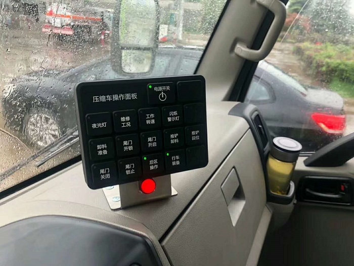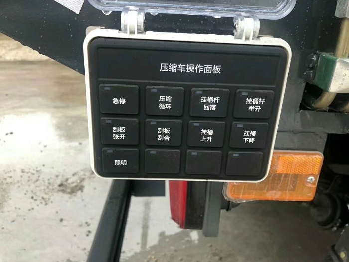 作業(yè)**盒分別安裝在駕駛室內(nèi)和車尾,駕駛室內(nèi)的作業(yè)**盒可**推擠卸料和選擇操作模式(如自動或手動),車尾的作業(yè)**盒則**壓填機(jī)構(gòu)和翻桶機(jī)構(gòu)的作業(yè),使用操作十分方便。特別是在垃圾填埋場,作業(yè)人員無須下車即可完成卸料和污水排放。