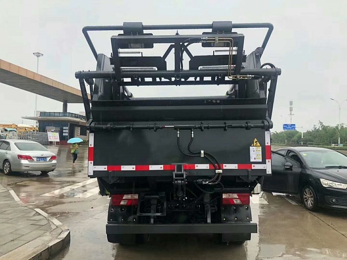 垃圾箱厚度3毫米,底板厚度3毫米高強(qiáng)度鋼,有效容積:6-7立方米,圓弧型箱體或方形箱體可供選擇,采用電、氣、液聯(lián)合**,具有手動和電動兩套完整操作系統(tǒng);尾部裝料系統(tǒng)為一鍵循環(huán)操作,車尾左右各一套;駕駛室內(nèi)部一套電動卸料操作系統(tǒng);合肥皖液齒輪泵/長源油泵,中梅多路閥/長源多路閥,山東萊州油缸/佛山海戰(zhàn)力油缸,**永宏/西門子PLC**系統(tǒng),裝填循環(huán)一次時間:≤40s,推卸垃圾時間:≤45s,后翻轉(zhuǎn)機(jī)構(gòu):①掛標(biāo)準(zhǔn)120升塑料桶/240升塑料桶/660升塑料桶/200升鐵桶/260升鐵桶,②普通翻轉(zhuǎn)撮箕斗,③全密封式翻轉(zhuǎn)斗;車尾填充器下部和垃圾箱下部都設(shè)有污水收集箱,共計兩個污水箱;便于收集車廂內(nèi)污水�?蛇x裝普通密封蓋,氣動密封蓋,液壓密封蓋。